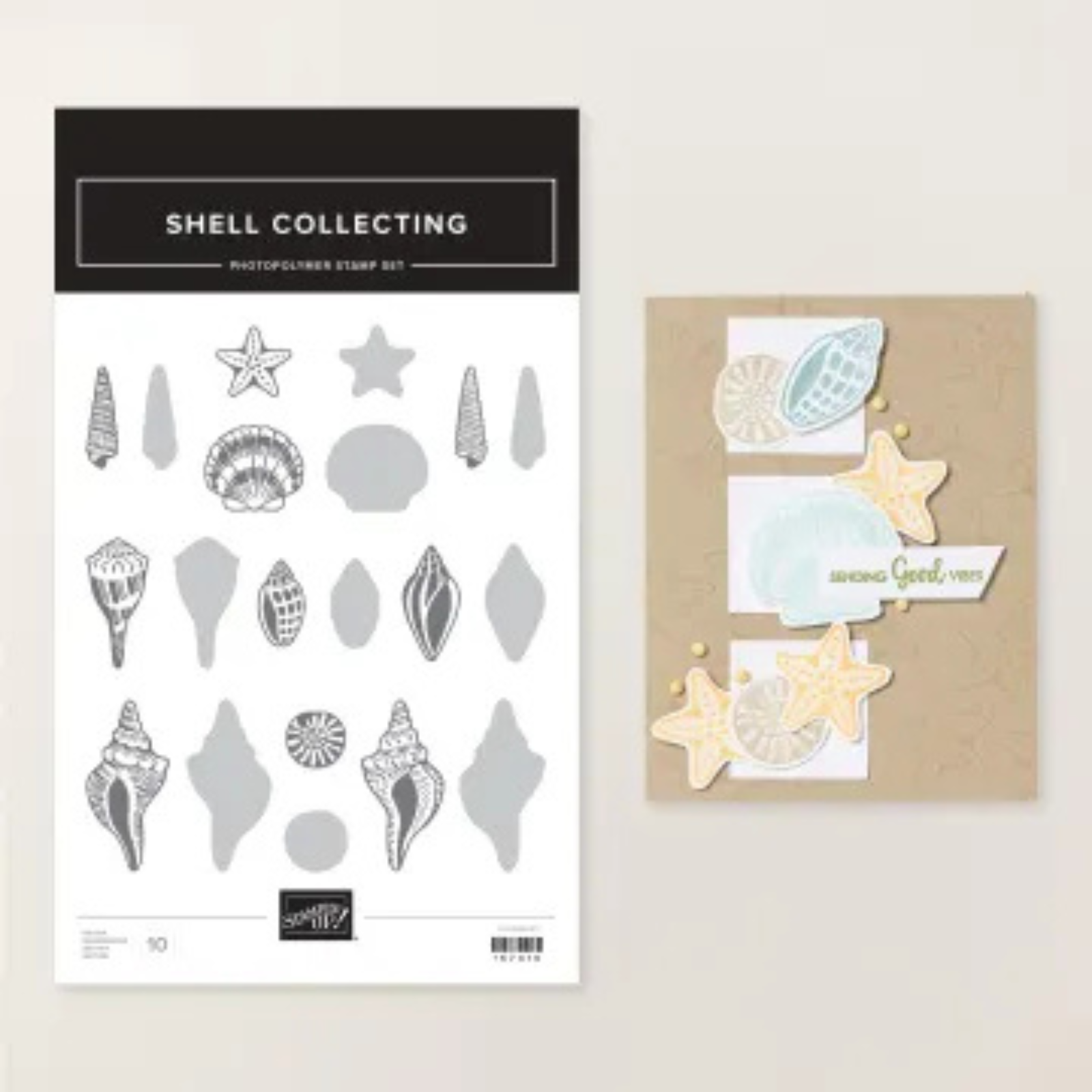 Met de stempelset Shell Collecting geef je je handgemaakte kaarten en andere papierprojecten moeiteloos een verfijnde uitstraling. Deze set bestaat uit zogeheten Reversibles-stempels. Dat betekent dat je beide zijden van de fotopolymeerstempels kunt gebruiken. Met de ene kant maak je een effen schelpenmotief en door de stempel om te draaien voeg je juist extra details toe. Zo biedt één set verrassend veel creatieve mogelijkheden en kun je eenvoudig variëren in stijl en uitstraling.