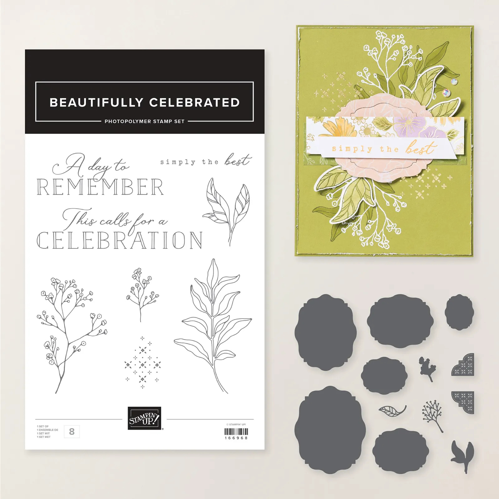 Ook bij dit project werk ik met twee nieuwe productpakketten die prachtig op elkaar aansluiten: Simply Beautiful en Beautifully Celebrated. Samen vormen ze een mooie basis voor romantische kaarten met veel laagjes en verfijnde details.